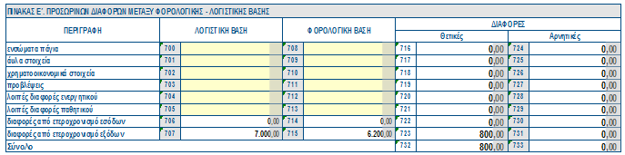 Ο Πίνακας Ε αντίστοιχα θα εμφανιζόταν ως εξής: