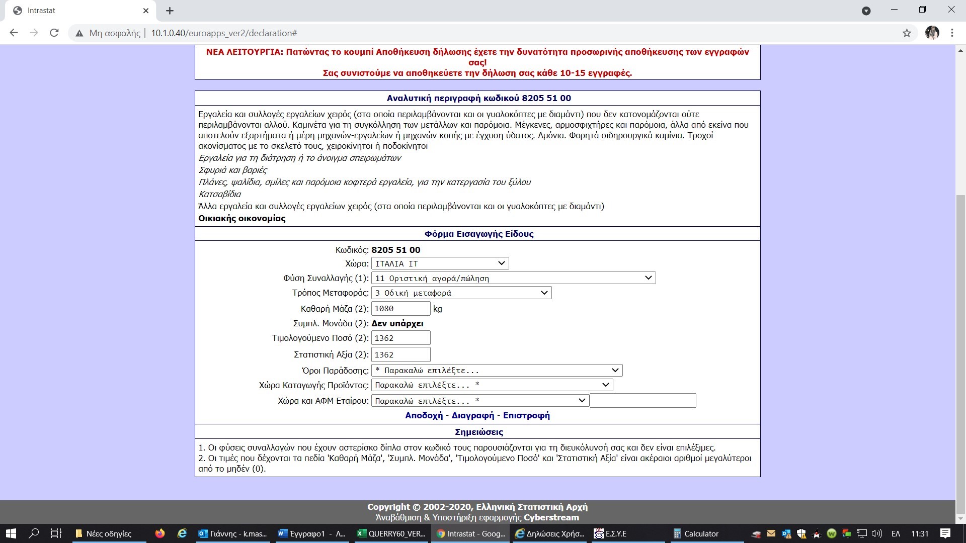 Σε συνέχεια της ανακοίνωσης των αλλαγών στη δήλωση INTRASTAT από τον Ιανουάριο 2022 από την Ελληνική Στατιστική Αρχή, δόθηκαν περαιτέρω οδηγίες για τη νέα φόρμα εισαγωγής είδους, τη φύση συναλλαγής, τους όρους παράδοσης και τη γραμμογράφηση αρχείου intrastat 2022.