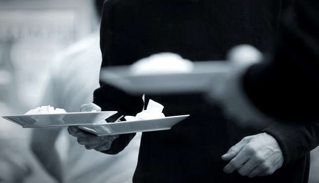 4. Οι σερβιτόροι και οι βοηθοί τους που απασχολούνται σε επιχειρήσεις τροφοδοσίας γευμάτων (catering), αμείβονται με ημερομίσθιο, το οποίο ανέρχεται για μεν τους σερβιτόρους σε 71,09 ευρώ, για δε τους βοηθούς αυτών σε 61,94 ευρώ. Στο ημερομίσθιο συμπεριλαμβάνονται όλες ol προσαυξήσεις για τυχόν εργασία την Κυριακή ή σε εορτή καθώς και νυκτερινές ώρες.