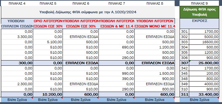 Πίνακας 2: Αποτελούν τις αξιές που εχουν προ-συμπληρωθεί από τη διαβίβαση δεδομένων στην ψηφιακή πλατφόρμα myDATA και ενημερώνονται αυτοματοποιημένα από τον ΠΙΝΑΚΑ 12 + ΠΙΝΑΚΑ 13 (υπάρχουν στο excel)