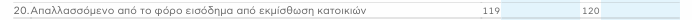 | Πίνακας «Συμπληρωματικά στοιχεία/Εκμισθώσεις» | 66, 67 | Νέοι κωδικοί (Α.1062) για ειδικές κατηγορίες εκμίσθωσης (π.χ. «Εκμίσθωση κατοικίας εξάμηνης τουλάχιστον διάρκειας που ήταν κενή» και ειδικές κατηγορίες δημόσιου προσωπικού). Εισαγωγή για να αποτυπωθούν νέες απαλλαγές/ειδικές περιπτώσεις. | |