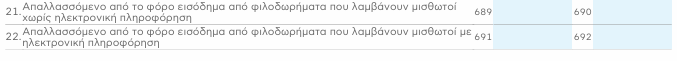 | Πίνακας 6 (Πληροφοριακά) | 689–690 ή 691–692 | Κωδικοί για φιλοδωρήματα (προαιρετική - προσυμπλήρωση έως €300 μηνιαίως) — υπήρχε εξειδίκευση ήδη στην Α.1032 αλλά στην Α.1062 επαληθεύεται η διαχείριση (προσαρμογή βάσει ηλεκτρονικής πληροφόρησης). | |