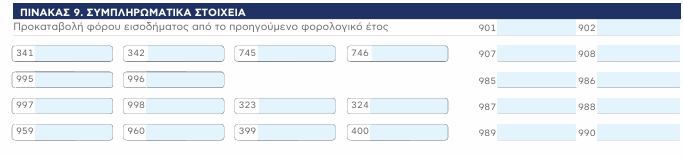 | Πίνακας 9 | 995–996 | Κωδικοί ειδικής εφαρμογής (συγκεκριμένος υπολογισμός 33% σε εισόδημα από προσαύξηση περιουσίας) — επιβεβαίωση και διατήρηση, με διευκρινίσεις υποβολής. | |