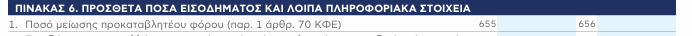 | Πίνακας 6 | 655–656 | Κωδικοί «ανενεργοί» κατά την αρχική υποβολή — ενεργοποιούνται από υπηρεσία εκκαθάρισης μόνο μετά από αίτηση για μείωση προκαταβολής. Σαφής πρόβλεψη για ενεργοποίηση με τροποποιητικές. | |