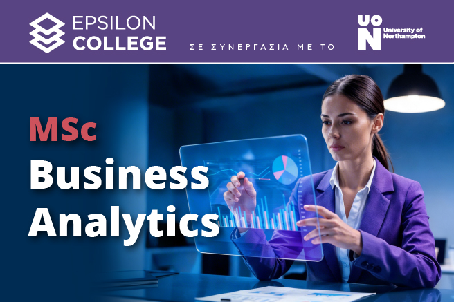 Το Epsilon Net College ανακοινώνει την έναρξη υποβολής αιτήσεων για το Μεταπτυχιακό πρόγραμμα MSc in Business Analytics, το οποίο υλοποιείται σε συνεργασία με το University of Northampton, ένα πανεπιστήμιο με διεθνή αναγνώριση και διάκριση Silver Award στο Teaching Excellence Framework (TEF 2023).