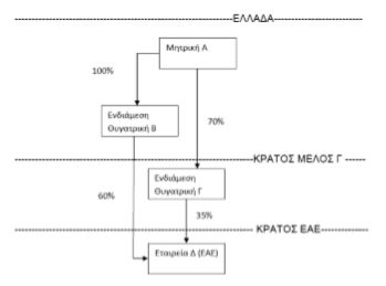 | ΕΛΛΗΝΙΚΗ ΔΗΜΟΚΡΑΤΙΑ | Αθήνα, 23 Φεβρουαρίου 2022 | | Ανεξάρτητη Αρχή Δημοσίων Εσόδων | Αρ.Πρωτ.: Ε. 2018 | | ΓΕΝΙΚΗ ΔΙΕΥΘΥΝΣΗ ΦΟΡΟΛΟΓΙΚΗΣ ΔΙΟΙΚΗΣΗΣ | | | ΔΙΕΥΘΥΝΣΗ ΕΦΑΡΜΟΓΗΣ ΑΜΕΣΗΣ ΦΟΡΟΛΟΓΙΑΣ | | | ΤΜΗΜΑΤΑ: Β΄ - Α΄ | | ΘΕΜΑ: Ελεγχόμενες Αλλοδαπές Εταιρείες - Εφαρμογή των διατάξεων του άρθρου 66 του Ν. 4172/2013, όπως ισχύουν μετά την τροποποίησή τους με τις διατάξεις του άρθρου 12 του Ν. 4607/2019 (Α΄ 65). ΠΕΡΙΛΗΨΗ Α) ΑΝΤΙΚΕΙΜΕΝΟ Εγκύκλιος που αφορά την παροχή διευκρινίσεων σχετικά με την εφαρμογή των διατάξεων του άρθρου 66 του Ν. 4172/2013 (ΚΦΕ), όπως ισχύουν μετά την τροποποίησή τους με τις διατάξεις του άρθρου 12 του Ν. 4607/2019 (Α΄ 65). Β) ΠΕΡΙΕΧΟΜΕΝΟ Περιεχόμενο της εγκυκλίου είναι οι προϋποθέσεις εφαρμογής του άρθρου 66 του ΚΦΕ με σκοπό την αποτροπή της φοροαποφυγής των εγχώριων εταιρειών μέσω της μεταφοράς των εσόδων τους σε χώρες με χαμηλή φορολογία, τα κριτήρια που πρέπει να πληρούνται προκειμένου για τον χαρακτηρισμό μίας Ελεγχόμενης Αλλοδαπής, Εταιρείας (ΕΑΕ), οι κανόνες υπολογισμού του φορολογητέου εισοδήματος της ΕΑΕ, ζητήματα που προκύπτουν σε περιπτώσεις μεταγενέστερης διανομής ή μεταβίβασης συμμετοχών στην ΕΑΕ, κ.λπ. Γ) ΠΕΔΙΟ ΕΦΑΡΜΟΓΗΣ Η εγκύκλιος αφορά φυσικά πρόσωπα, νομικά πρόσωπα και νομικές οντότητες που διατηρούν ΕΑΕ με τις προϋποθέσεις των υπόψη διατάξεων. Α. ΓΕΝΙΚΑ 1. Με τις διατάξεις του άρθρου 66 του Ν. 4172/2013 (εφεξής ΚΦΕ), όπως ισχύουν μετά την τροποποίησή τους με τις διατάξεις του άρθρου 12 του Ν.4607/2019 θεσπίζεται ειδικός αντικαταχρηστικός κανόνας για την αποτροπή της φοροαποφυγής των εγχώριων εταιρειών μέσω της μεταφοράς των εσόδων τους σε θυγατρικές που βρίσκονται σε χώρες με χαμηλή φορολογία. Συγκεκριμένα, εισάγονται διατάξεις περί ελεγχόμενων αλλοδαπών εταιρειών (Controlled Foreign Companies) που αφορούν στη συμπερίληψη στο φορολογητέο εισόδημα της εγχώριας εταιρείας μη διανεμηθέντος εισοδήματος νομικού προσώπου ή νομικής οντότητας που είναι φορολογικός κάτοικος άλλης χώρας ή μη αποδοθέντος εισοδήματος μόνιμης εγκατάστασης στην αλλοδαπή, εφόσον συντρέχουν σωρευτικά οι προϋποθέσεις που ορίζονται στο άρθρο αυτό (σχετ. η Ε.2071/2019 εγκύκλιος κοινοποίησης διατάξεων). 2. Επισημαίνεται ότι οι διατάξεις του άρθρου 66 του ΚΦΕ είναι ειδικότερες σε σχέση με τις διατάξεις του άρθρου 38 Ν. 4174/2013 (ΚΦΔ). Κατά συνέπεια, περιπτώσεις που εμπίπτουν στο πεδίο εφαρμογής του άρθρου 66 του ΚΦΕ εξετάζονται μόνο υπό το πρίσμα αυτού και όχι υπό το πρίσμα των γενικότερων διατάξεων, ούτε σωρευτικά ούτε εναλλακτικά (E.2167/2019). Β. ΠΡΟΥΠΟΘΕΣΕΙΣ ΕΦΑΡΜΟΓΗΣ ΑΡΘΡΟΥ 66 ΚΦΕ Β.1. ΟΡΙΣΜΟΣ ΕΛΕΓΧΟΜΕΝΩΝ ΑΛΛΟΔΑΠΩΝ ΕΤΑΙΡΕΙΩΝ 3. Με τις διατάξεις της παραγράφου 1 του άρθρου 66 ΚΦΕ, όπως αυτές ισχύουν μετά την τροποποίησή τους με τις διατάξεις του Ν.4607/2019 και οι οποίες έχουν εφαρμογή για τα εισοδήματα που αποκτώνται και τις δαπάνες που πραγματοποιούνται στα φορολογικά έτη που αρχίζουν από την 1.1.2019 και μετά, ορίζεται ότι ως Ελεγχόμενη Αλλοδαπή Εταιρεία νοείται το αλλοδαπό νομικό πρόσωπο ή η αλλοδαπή νομική οντότητα ή η μόνιμη εγκατάσταση στην αλλοδαπή, τα κέρδη της οποίας δε φορολογούνται ή απαλλάσσονται του φόρου στην ημεδαπή, όταν συντρέχουν σωρευτικά οι εξής προϋποθέσεις (περιπτώσεις (α), (β) και (γ) της παραγράφου 1 του άρθρου 66 ΚΦΕ). Β.2. ΤΟ ΚΡΙΤΗΡΙΟ ΤΗΣ ΣΥΜΜΕΤΟΧΗΣ (άρθρο 66 παράγραφος 1 εδάφιο α ΚΦΕ) 4. Στην περίπτωση νομικού προσώπου ή νομικής οντότητας, ο φορολογούμενος μόνος του ή από κοινού με τις συνδεδεμένες με